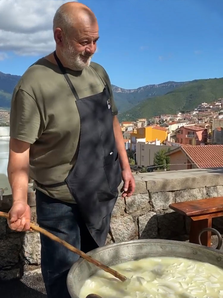 Onanì racconta la Sardegna pastorale. Qui il porcheddu, cotto allo spiedo e aromatizzato con sale e mirto, è molto più di un piatto: è un simbolo di identità, lavoro e condivisione.