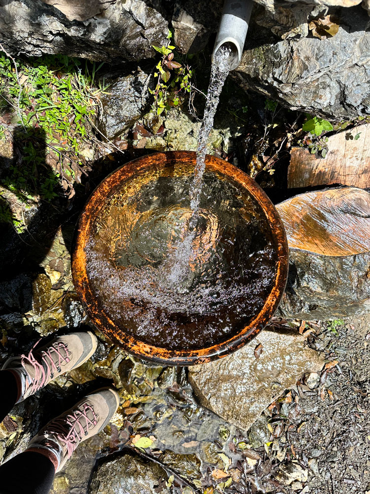 Acqua pura: porta sempre con te una borraccia e riempila alle fontane montane, difficilmente nella vita avrai bevuto un’acqua così pura.