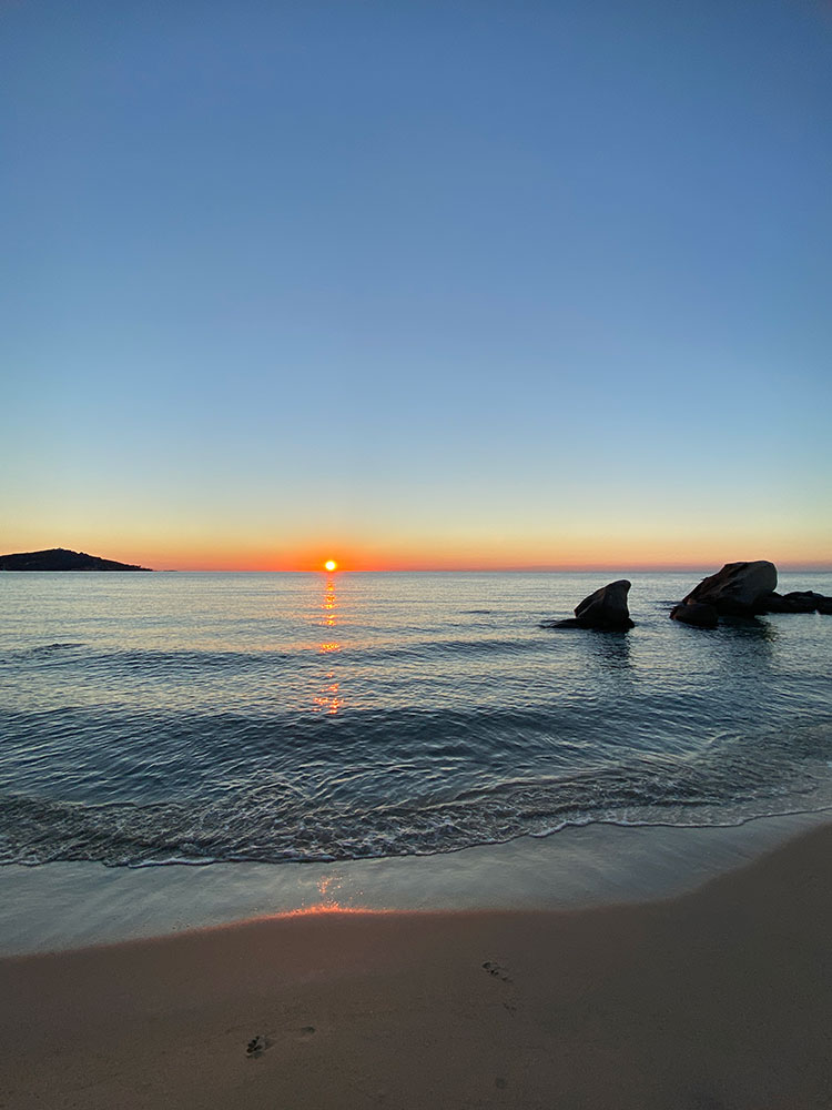 Passeggio sulla battigia, mentre il sole fa capolino dall’orizzonte, dando vita ad un giorno nuovo. L’acqua è solitamente molto calda. Mi tuffo nell’azzurro del mare dai riflessi d’orati. Così iniziano le mie giornate estive in Ogliastra.