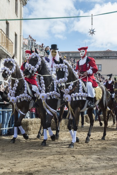 Il protagonista assoluto è Su Componidori, il cavaliere mascherato che guida la giostra e che, una volta vestito, non può più toccare terra. Non è più un uomo: è un tramite sacro tra il cielo e la terra, un semi Dio.