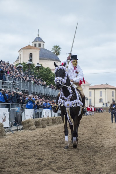 Con la spada alzata cerca di infilare una stella appesa ad un filo, in una corsa al galoppo che lascia tutti col fiato sospeso. Ogni stella centrata è un boato di grida festanti, un augurio di fertilità e abbondanza per l’intera comunità.