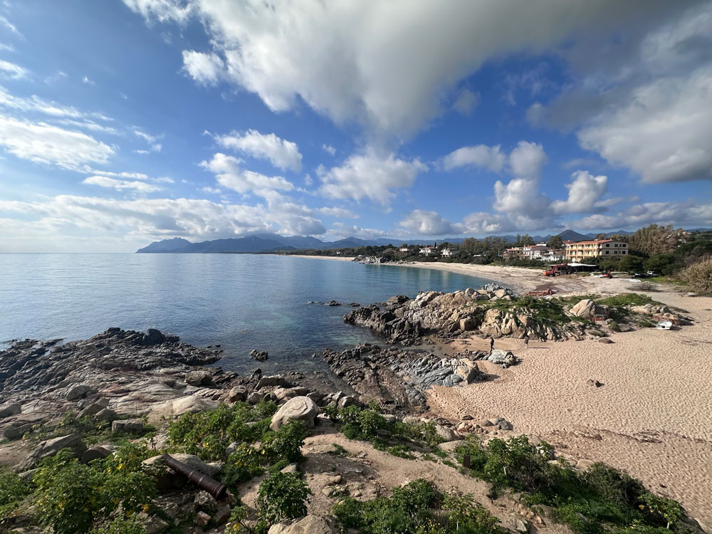 La lingua di terra che ospita la torre Spagnola divide letteralmente in due la spiaggia di Bari Sardo.